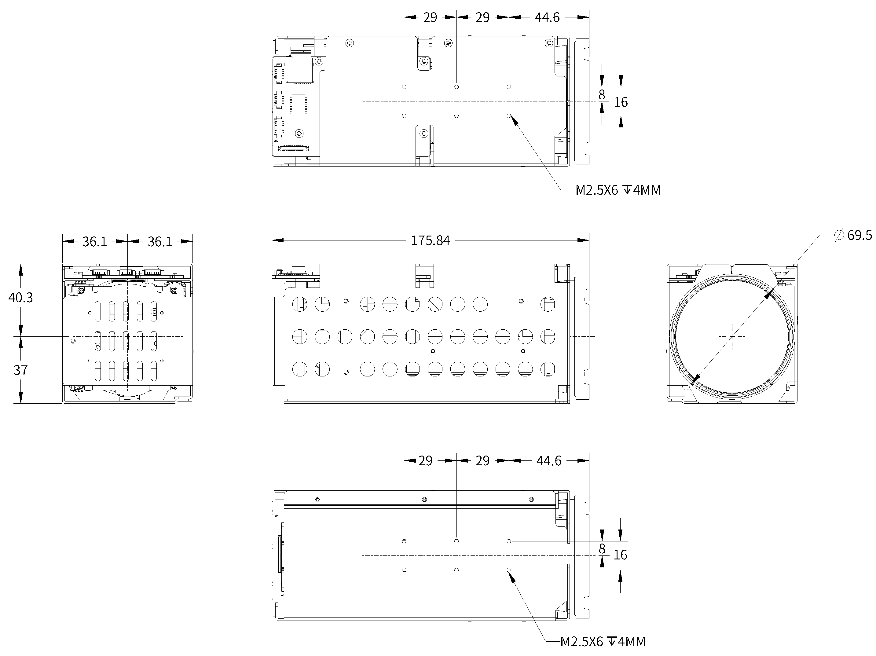 4pin Ethernet Port, 6pin Power & Uart Port, 5pin audio portua. 30pin mipi |